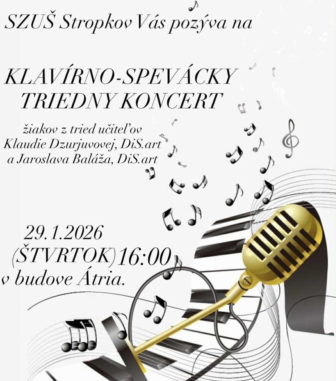 Dňa 29.1.2026 sa uskutočnil ďalší klavírno-spevácky triedny koncert žiakov z tried učiteľov Klaudie Dzurjuvovej, DiS.art a Jaroslava Baláža, DiS.art.