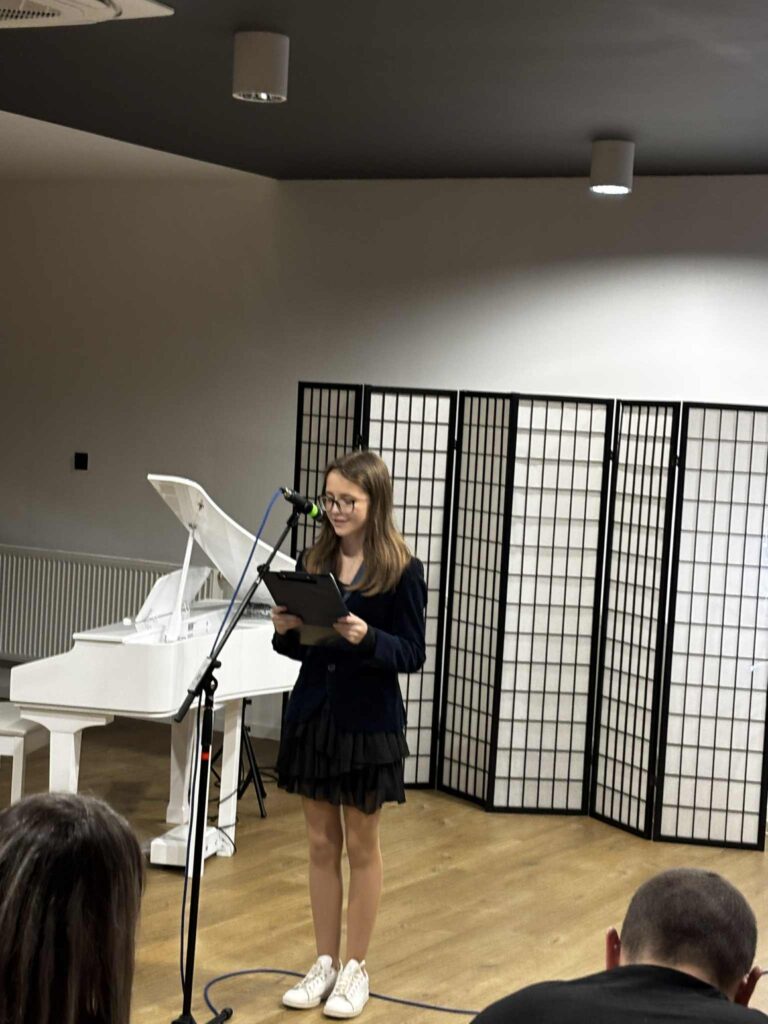 Koncertom divákov sprevádzala žiačka literárno-dramatického odboru Veronika Marčišinová.